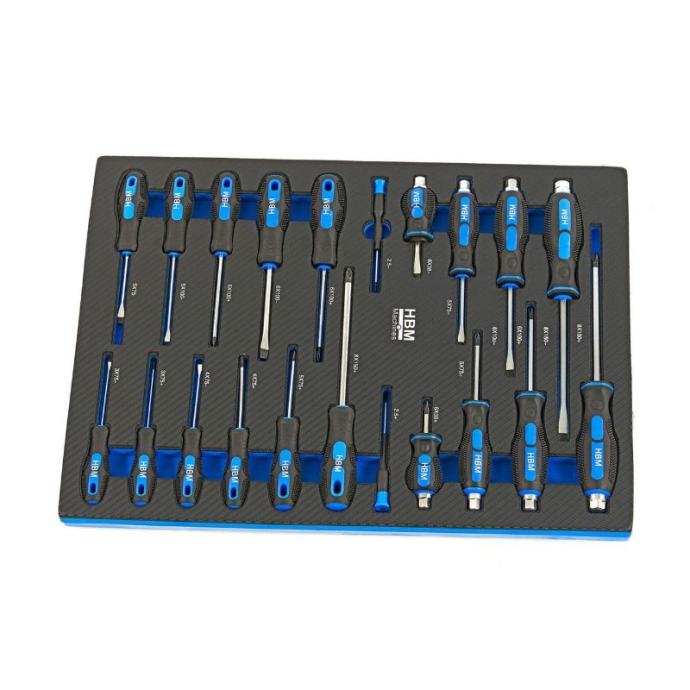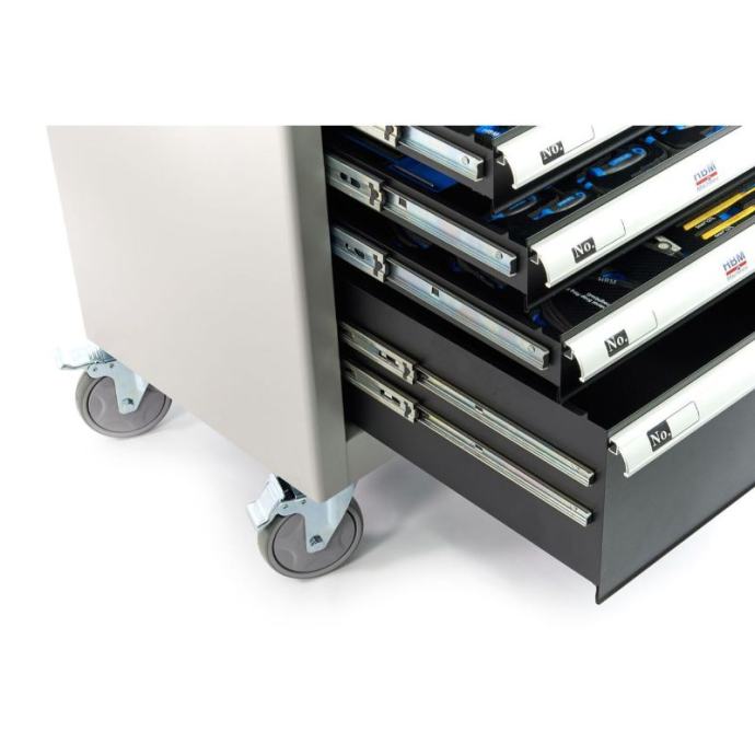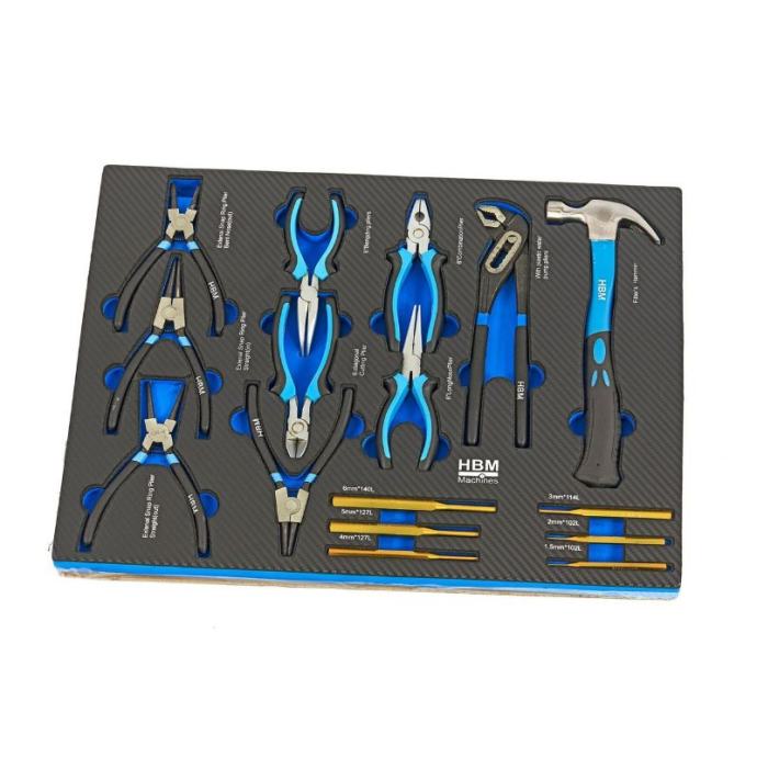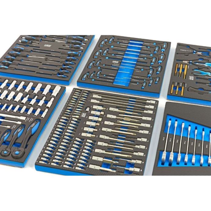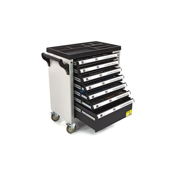 Ova profesionalna kolica za alat dizajnirana su za maksimalnu izdržljivost i organizaciju vaših alata. Izrađena su s ekstra otpornim karbon ulošcima koji štite alat, a ladice se zaključavaju centralnim mehanizmom za sigurnost. Gornja ploča s razdjelnicima omogućuje uredan raspored manjih dijelova i dodataka. Dimenzije kolica su 890 x 460 x 970 mm, a dimenzije vrata su 320 x 700 mm, što omogućuje jednostavan pristup i optimalno korištenje prostora. Kolica sadrže sedam ladica s različitim vrstama alata: 1. ladica: Razni nasadni ključevi i račne u veličinama 1/4", 3/8" i 1/2", uključujući produžetke i zglobove za različite primjene. 2. ladica: Ključevi na račnu u veličinama od 8 do 22 mm. 3. ladica: Razni bitovi za odvijače i specijalni bitovi različitih veličina i oblika, uključujući T, HW, S, V, PH, PZ i druge. 4. ladica: Ravni i križasti odvijači, uključujući i udarne verzije u različitim dimenzijama. 5. ladica: T imbus ključevi s okruglom glavom i standardni T imbus ključevi u različitim veličinama i duljinama. 6. ladica: Razne vrste kliješta (kombinirana, ravna, savijena, za uskočnik) te izbijači i čekić. 7. ladica: Prazna, spremna za dodatni alat ili pribor po vašem izboru. Ova kolica pružaju sveobuhvatan set alata za razne mehaničke i tehničke radove, uz organizaciju koja olakšava rad i štiti alat od oštećenja.