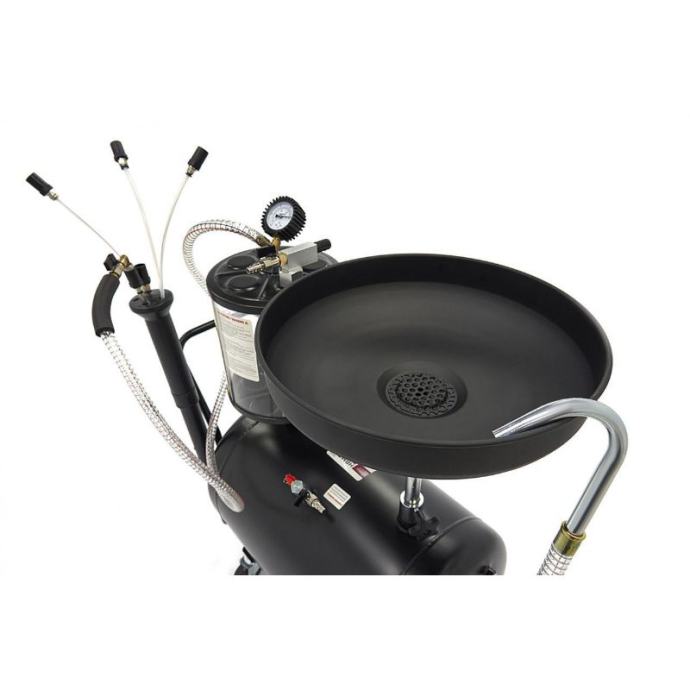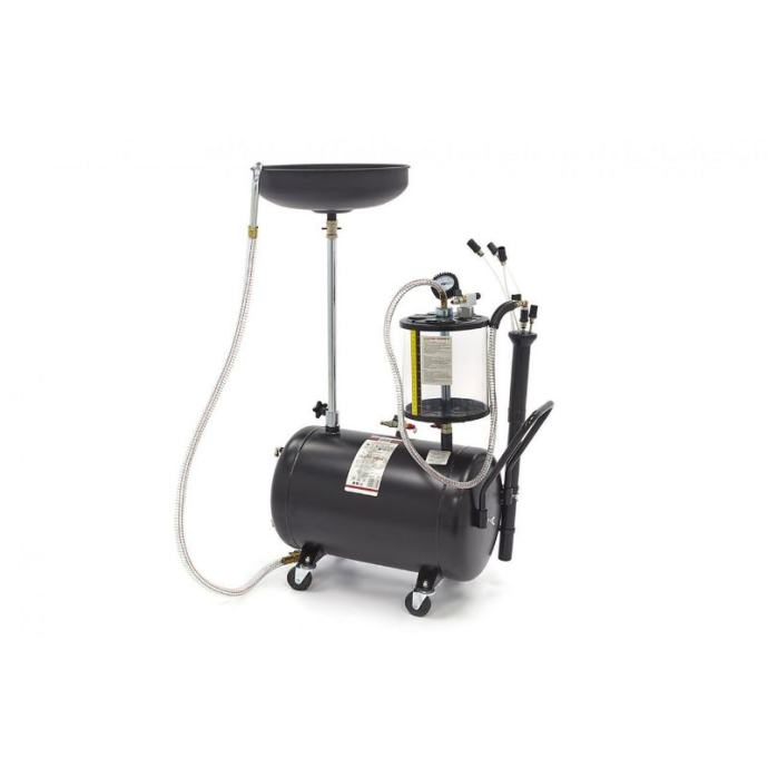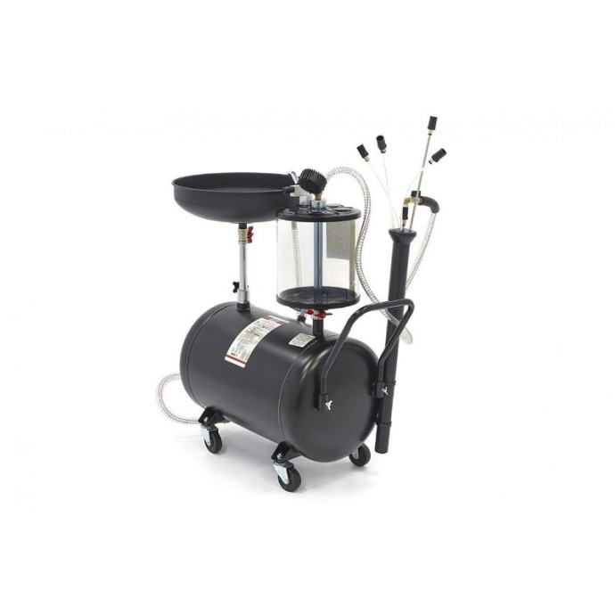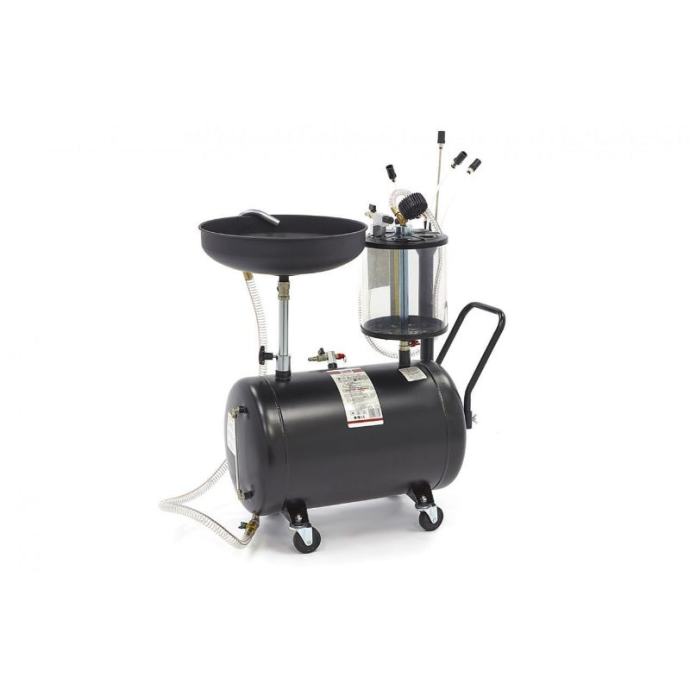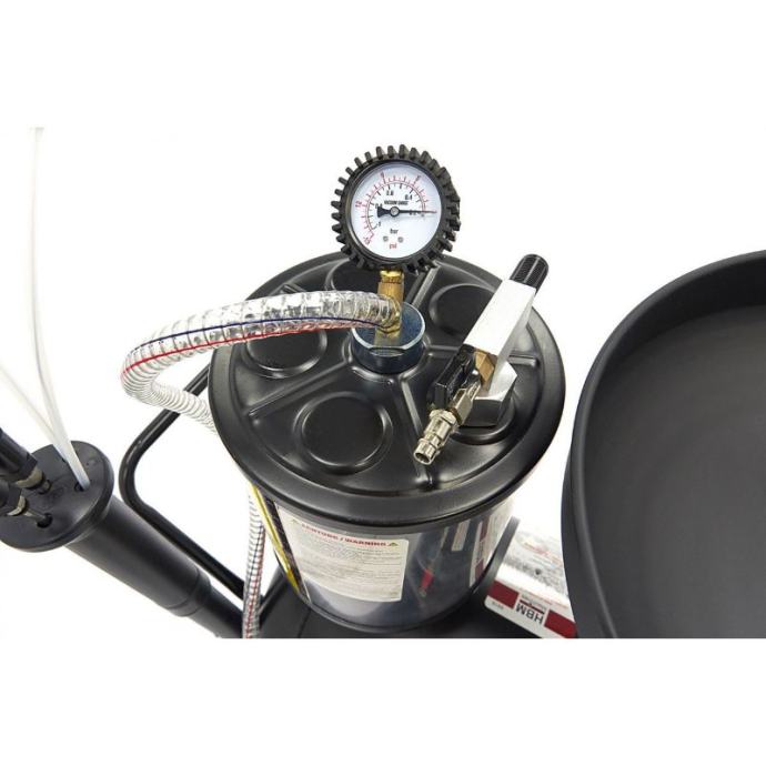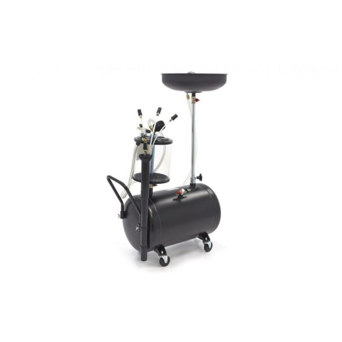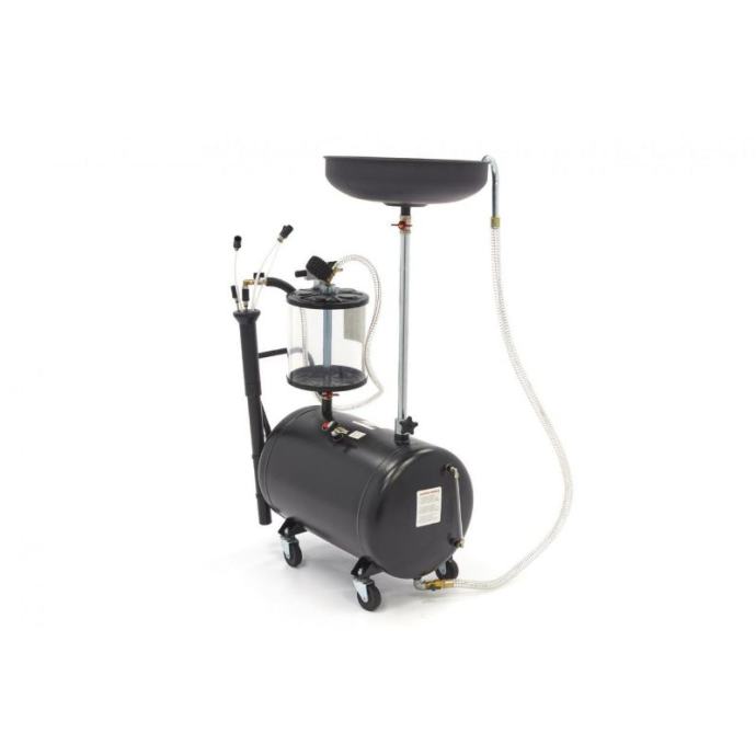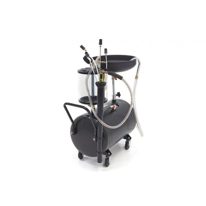 Ovaj uređaj služi za jednostavno i učinkovito usisavanje ulja iz motora vozila ili broda pomoću mjerne šipke i uključenih sondi. Količina ulja koja se uklanja lako se očitava kroz veliki stakleni mjerač, što omogućuje precizno praćenje. Spremnik za prikupljanje ulja može se koristiti i kao spremnik za ulje te se lako prazni putem priključka za komprimirani zrak. Uređaj je opremljen čvrstim kotačima, od kojih su dva okretna u svim smjerovima, što olakšava premještanje i pohranu u radionicu ili garažu. Zahvaljujući vakuumu, ulje se bez napora uklanja iz različitih dijelova vozila poput blokova motora, kardanskih osovina i sustava hlađenja. Sustav za vađenje ulja ima kapacitet od 0,6 do 1,6 litara u minuti, uz potrošnju zraka od približno 200 litara u minuti i radni tlak od 0,8 bara. Spremnik je prikladan za spremnike kapaciteta do 70 litara i isporučuje se s različitim adapterima i fleksibilnim crijevima. Tehničke karakteristike: - Kapacitet usisavanja: 0,6 do 1,6 litara u minuti - Minimalna visina uređaja: 95 cm - Duljina plastičnih crijeva: 90 cm - Duljina metalnih cijevi: 75 cm - Potrošnja zraka: oko 200 litara u minuti - Maksimalni vakuum: -1 Bar - Temperatura ulja: 40-60 °C - Radni tlak: 8-10 bara - Kapacitet spremnika: 70 litara - Sadržaj spremnika: 10 litara - Dimenzije pakiranja: Kutija 1 – 50 x 45 x 94 cm, Kutija 2 – 27 x 28 x 51 cm - Težina: 23 kg Ovaj praktičan uređaj omogućuje brzo i čisto uklanjanje ulja, čineći održavanje vozila ili plovila jednostavnijim i učinkovitijim.