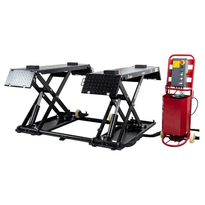 Škarasta hidraulična dizalica nosivosti 3000 kg dizajnirana za servisiranje guma, kočnica i radove na donjim dijelovima vozila. Maksimalna visina podizanja je 960 mm, a minimalna visina baze 115 mm, što omogućuje jednostavan pristup i ulazak niskih vozila. Platforme duljine 1480 mm ili 2080 mm s rampama pogodne su za duža vozila. Upravlja se putem zasebne kontrolne ploče s jasno označenim funkcijama. Hidraulički pogon omogućuje podizanje i spuštanje u trajanju od 35 sekundi. Kompaktnih dimenzija, zauzima malo prostora i napaja se jednofazno na 230 V. Ulje za hidraulički sustav i napojni kabel potrebno je osigurati zasebno.
