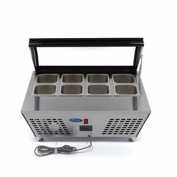 Luksuzni stolni rashladni uređaj kapaciteta 67 litara, s čvrstim staklenim poklopcem i radnom pločom od nehrđajućeg čelika. Može primiti 8 x 1/6 GN ili 4 x 1/3 GN pladnjeva. Opremljen je digitalnom kontrolom temperature, ventilatorskim sustavom hlađenja, automatskim odmrzavanjem i Zanussi kompresorom s rashladnim sredstvom R134a bez CFC-a. Debljina izolacije je 35 mm, a temperatura se može podešavati između 0 i +10 °C. Dimenzije uređaja su 767 x 612 x 328 mm, a neto težina 25 kg.