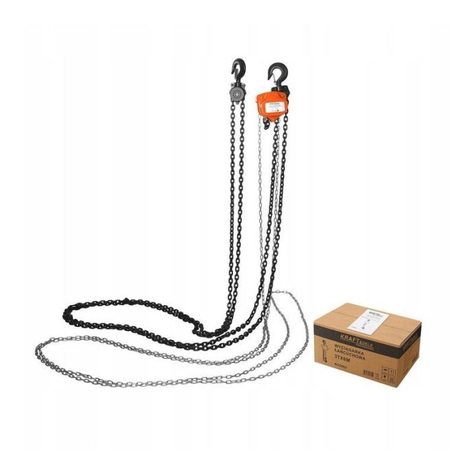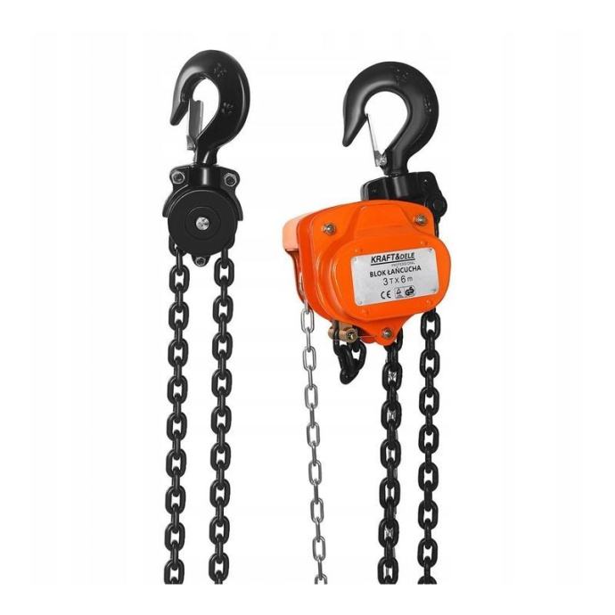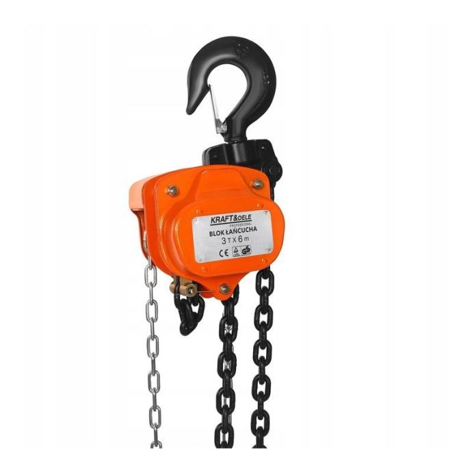 Ručno vitlo s nosivosti od 3 tone i čeličnim lancem duljine 6 metara. Precizan lančani mehanizam omogućuje sigurno i kontrolirano podizanje teških tereta, idealno za profesionalnu upotrebu poput podizanja motora, strojeva i konstrukcijskih dijelova. Kućište je izrađeno od otpornog lijevanog željeza, a lanac ima promjer od 8 mm.