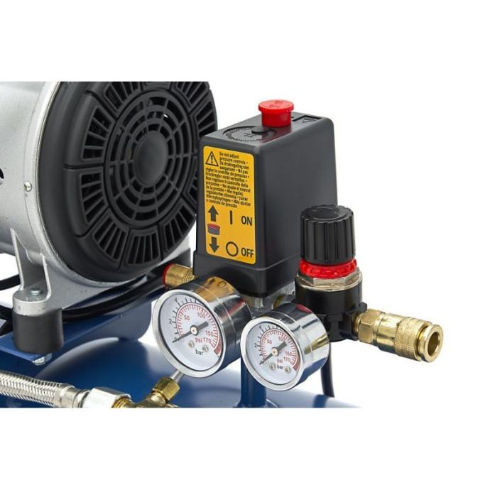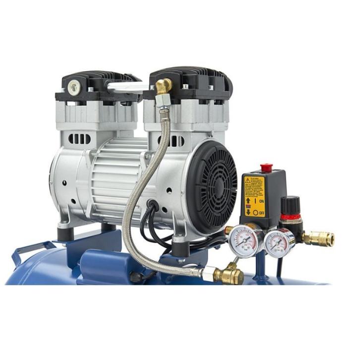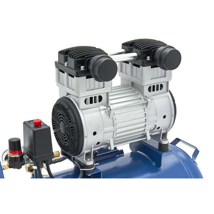 Bezuljni kompresor s 50 L spremnikom i motorom od 1,5 kW pruža stabilan dovod zraka za razne pneumatske alate u radionici ili garaži. Ne zahtijeva podmazivanje uljem, što smanjuje održavanje. Kompresor je mobilan, tih (86 dB), s protokom zraka od 245 L/min i maksimalnim tlakom od 8 bara, idealan za standardne zračne alate.