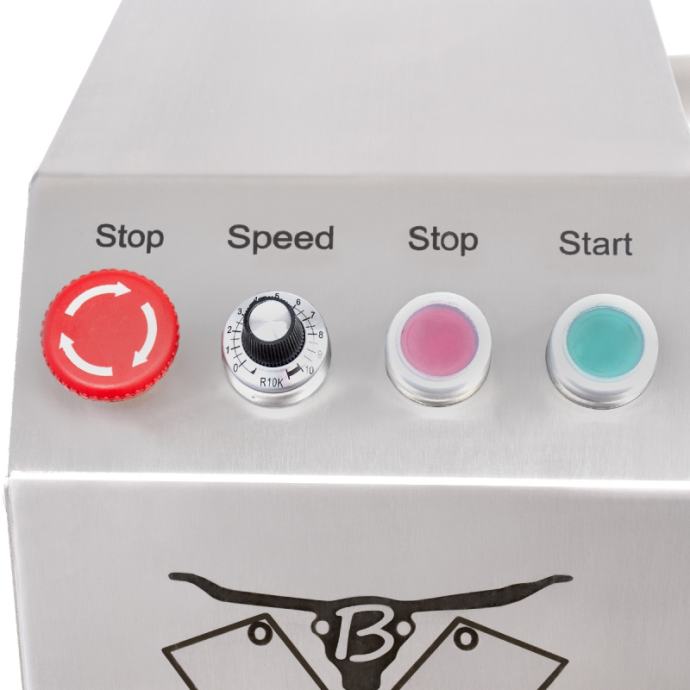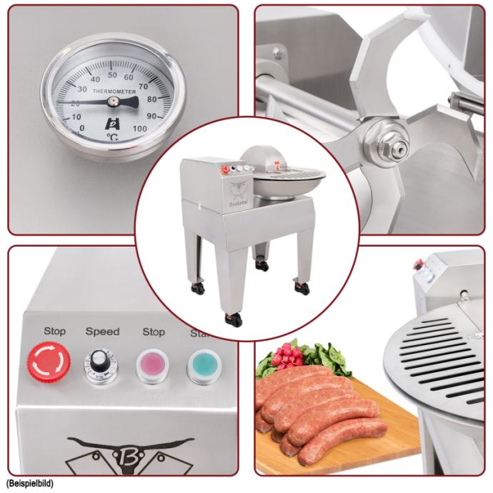 Ovaj uređaj je model BFK-30 s priključkom od 230 V i snagom od 1800 W. Ima ukupni volumen od 20 litara i može obraditi oko 15 kg materijala. Dimenzije su 850 x 545 x 1030 mm, a brzina oštrice varira između 2700 i 4800 okretaja u minuti. Uređaj je opremljen ugrađenim termometrom i potenciometrom te ima kabel za napajanje dužine 2000 mm. Neto težina uređaja je oko 106,5 kg.