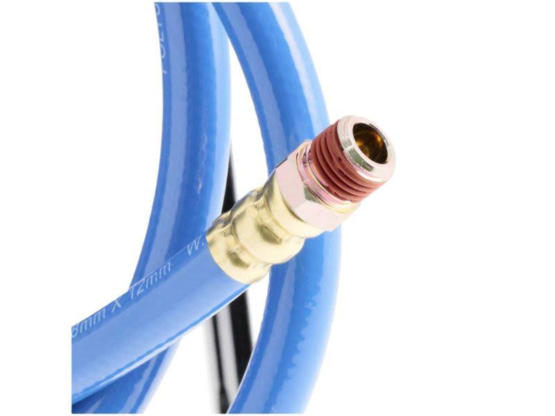 Kolut sa crijevom dužine 20 metara namijenjen za sustave komprimiranog zraka. Maksimalni radni tlak je 15 bar. Veličina priključaka je 1/4 cola, unutarnji promjer crijeva 8 mm, a vanjski promjer 12 mm. Izrađeno od poliuretana, bez brzih spojnica i bez pojačanja.