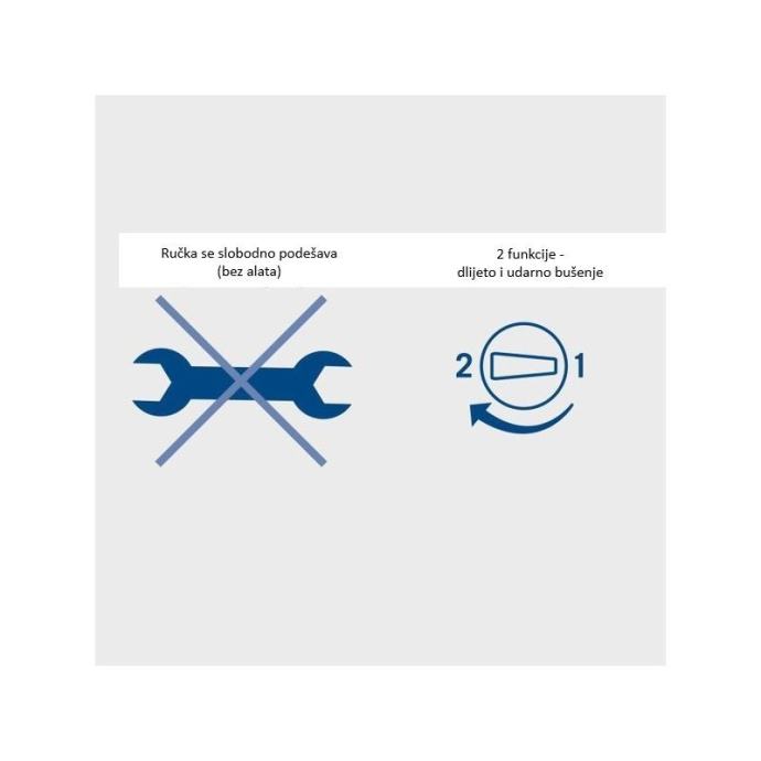 Električni rotacijski čekić s dvije funkcije: udarno bušenje i dlijeto, namijenjen za rad u betonu, kamenu i zidu. Ima udarnu energiju od 10 J i brzinu udara do 3800 bpm, što omogućuje teže zahvate poput proboja, skidanja obloga, izrade kanala i rušenja lokalnih dijelova betona ili žbuke. Brzina bez opterećenja je do 630 o/min. Prihvat SDS-Max omogućuje brzu izmjenu svrdla i dlijeta bez ključa. Uključuje šiljasto i ravno dlijeto, ugljične četkice, tubu masti i transportnu kutiju.