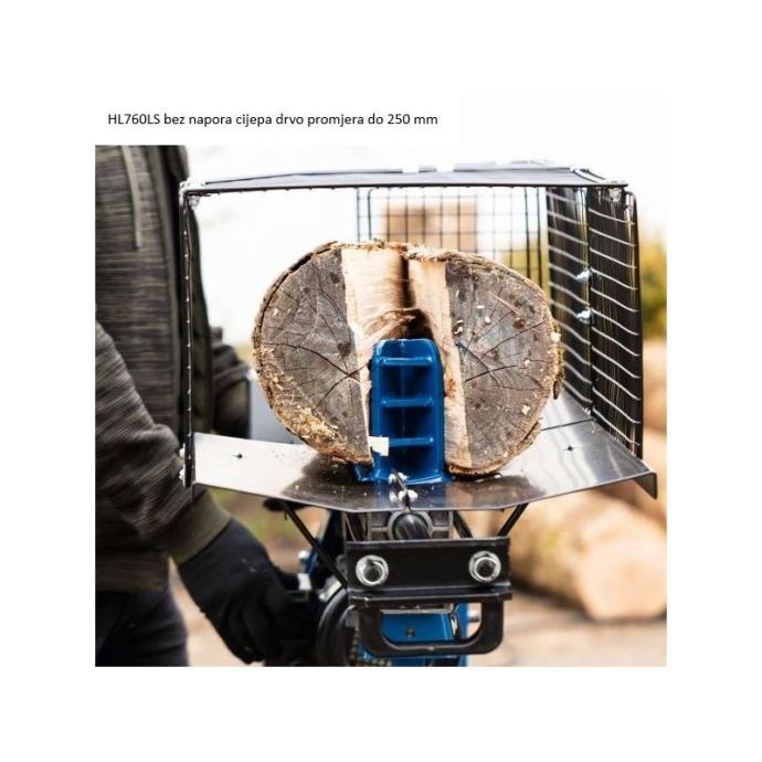 Horizontalni električni hidraulički cjepač drva HL760L s motorom snage 2200 W i silom cijepanja od 7 tona. Namenjen je za cijepanje trupaca dužine od 20 do 52 cm i promjera od 5 do 25 cm. Ima hidraulički tlak od 20,8 MPa, automatski povrat cilindra, kotače za lakše premještanje i zaštitu IP54. Idealno za učinkovito i brzo cijepanje drva za ogrjev.