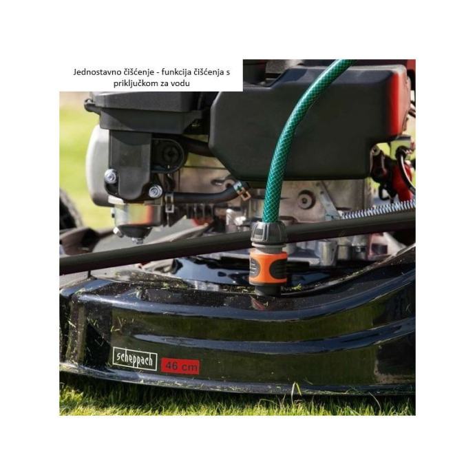 -MS150-46E je samohodna kosilica razvijena za učinkovit rad na manjim i srednjim površinama do 1000 m², uključujući neravne i zahtjevnije terene. -Pogon na kotače smanjuje fizičko opterećenje, a hibridni sustav pokretanja omogućuje start bez povlačenja užeta kada želite (električni start) uz opciju ručnog povratnog startera. -Motor 150 cm³ (3,5 KS / 2,6 kW) i mjenjač za visoki okretni moment ciljaju na stabilan rad i dug radni vijek. -Centralno podešavanje visine košnje u 8 koraka (25–75 mm) omogućuje brzu prilagodbu uvjetima travnjaka. -Širina reza 46 cm i platnena vreća 55 L smanjuju broj prolaza i pražnjenja. -Za različite scenarije košnje dostupni su stražnje izbacivanje, bočno izbacivanje i malčiranje. -Nakon rada, priključak za vodu i integrirana funkcija čišćenja olakšavaju održavanje kućišta i smanjuju nakupljanje ostataka trave. -Sklopiva ručka pojednostavljuje transport i skladištenje. Tehnički podaci Pogon Motor s unutarnjim izgaranjem s električnim pokretanjem + povratni starter Zapremnina motora 150 cm³ Snaga 3,5 KS / 2,6 kW Širina košnje 460 mm Za travnjake do 1000 m² Visina košnje 25–75 mm (8 postavki, centralno) Vreća za travu 55 L (najlon/platnena) Brzina noža 2800 o/min Pogon kotača Da (3,6 km/h) Funkcije Malčiranje, bočno izbacivanje, stražnje izbacivanje, funkcija čišćenja Materijal kućišta Čelik Kapacitet spremnika goriva 0,8 L Količina motornog ulja 0,4 L (ulje nije uključeno) Dimenzije (D × Š × V) 1500 × 630 × 1180 mm Težina Neto 28,4 kg / Bruto 33,0 kg Baterija (za start) 20 V, 2 Ah + punjač 2,4 A (uključeno) Vrijeme punjenja 90 min Dostava: 18 € Kontakt: 0976260271 E-mail: idealalati@gmail.com