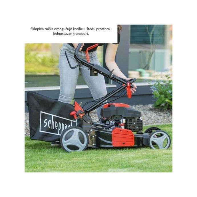 MS150-46E je samohodna kosilica namijenjena za košnju manjih i srednjih travnjaka do 1000 m², uključujući neravne terene. Ima motor od 150 cm³ sa snagom 3,5 KS, pogon na kotače za lakše upravljanje i električni start s opcijom ručnog povratnog startera. Širina reza je 46 cm, a visina košnje se podešava u 8 koraka od 25 do 75 mm. Opremljena je platnenom vrećom za travu od 55 L te omogućuje malčiranje, bočno i stražnje izbacivanje trave. Ima ugrađenu funkciju čišćenja s priključkom za vodu i sklopivu ručku za lakši transport i skladištenje.