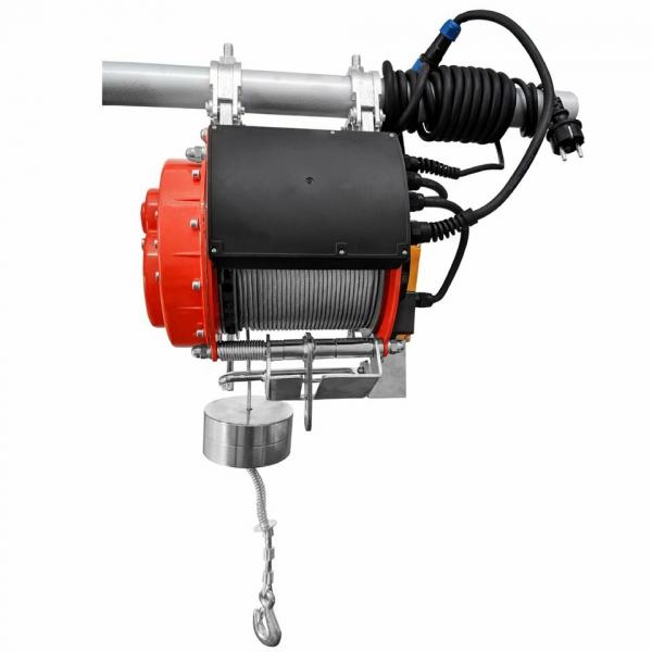 Električno vitlo HXS800-YT s čeličnim užetom dugim 32 metra, namijenjeno za podizanje tereta do 800 kg. Opremljeno je sustavom za vođenje kabela, mehaničkom kočnicom, automatskim krajnjim prekidačima te se može montirati na okrugle i kvadratne cijevi. Idealno za radionice, garaže, skladišta, poljoprivredu, industriju i vrtlarstvo. Dolazi s montažnim kopčama i jermenicom s kavljem.