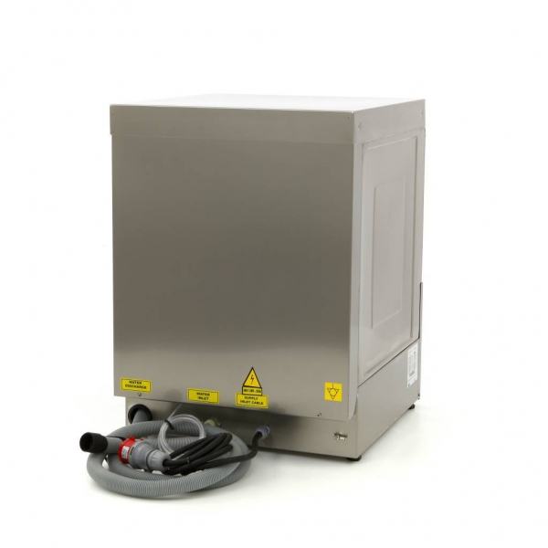 Profesionalna perilica posuđa VN-500 Ultra 400V je dizajnirana za učinkovito pranje svih vrsta tanjura, šalica i pribora za jelo u profesionalnim kuhinjama, pubovima, kafićima, barovima i restoranima. Izrađena je od nehrđajućeg čelika s robusnim dizajnom i tiha je u radu. Perilica ima kapacitet bojlera od 6 litara, nisku potrošnju vode od 2,8 litara po ciklusu te temperature pranja i ispiranja od 60 °C odnosno 85 °C. Uključuje košare za tanjure, čaše i pribor, te dovodno i odvodno crijevo. Idealna je za održavanje posuđa savršeno čistim i suhim.