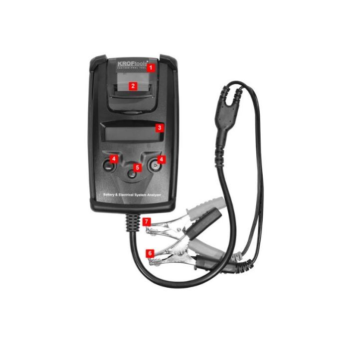 Ovaj uređaj testira stanje i kapacitet baterija od 6V i 12V, te sustave punjenja od 12V i 24V. Mjeri trajanje baterije, provjerava sustav pokretanja i stanje alternatora. Ima LCD zaslon, ispisuje rezultate na listiću i podržava više jezika (engleski, francuski, španjolski, talijanski, portugalski i japanski). Uređaj uključuje prozirni omot, papir za ispis, LCD zaslon, te pozitivnu i negativnu stezaljku.