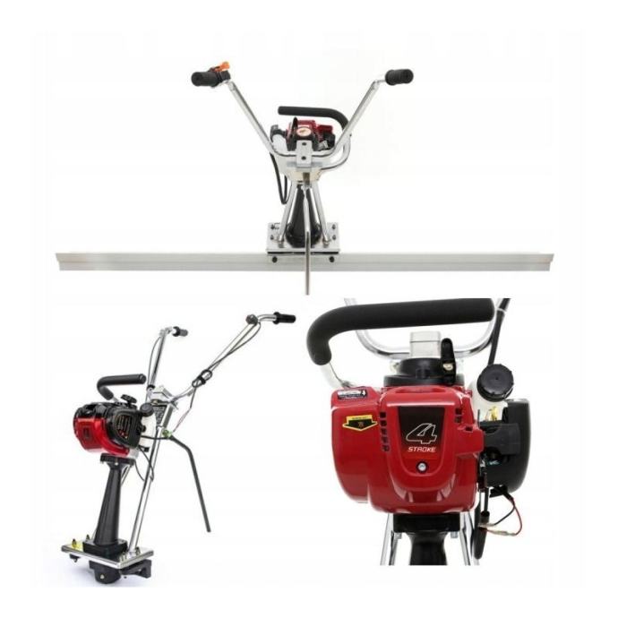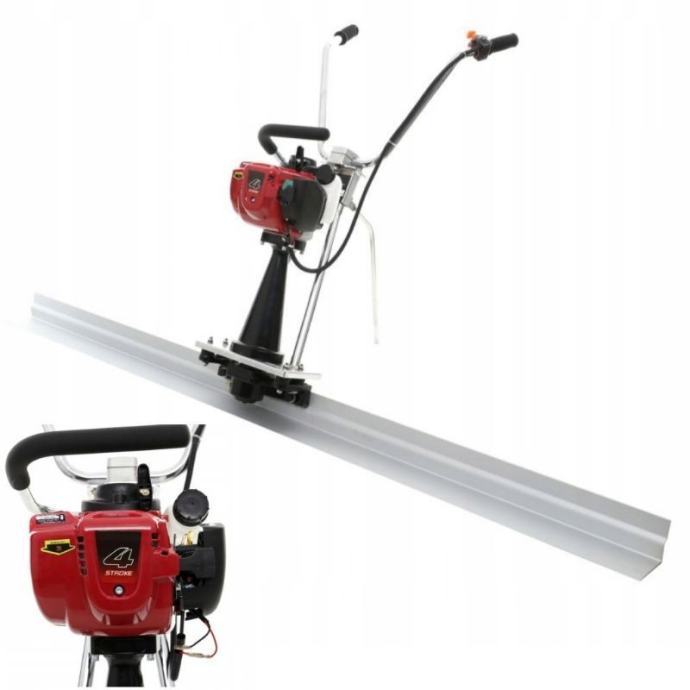 Benzinska vibracijska ploča namijenjena za izravnavanje i zbijanje betonskih površina, pijeska i šljunka. Pokreće je snažan 4-taktni motor od 1,6 kW s vibracijskom gredom duljine 2 m za učinkovito i ravnomjerno zbijanje na većim površinama. Uređaj ima podesivu ručku za prilagodbu radnog položaja i koristi se na gradilištima za podove i estrihe.
