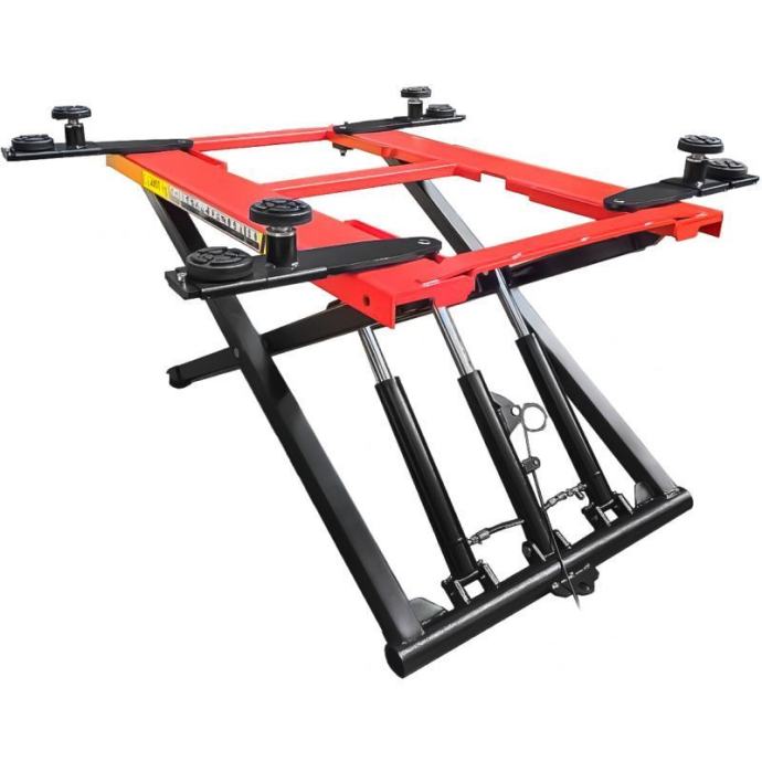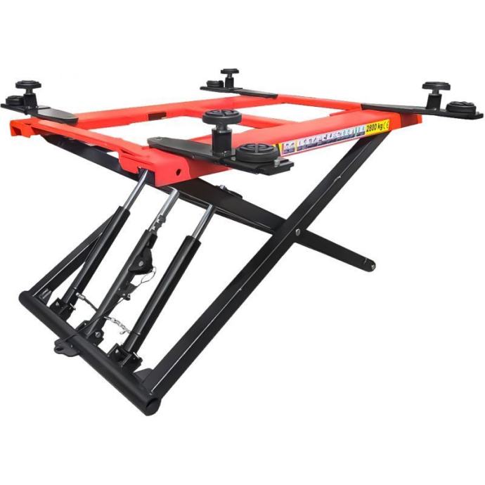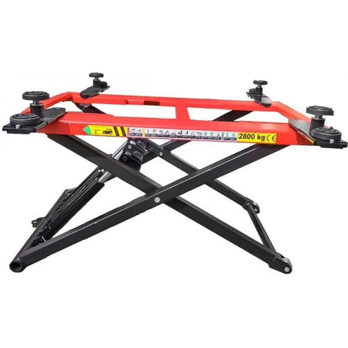 Škarasta dizalica nosivosti 2800 kg dizajnirana za podizanje osobnih automobila i lakih dostavnih vozila. Ima radni raspon podizanja od 120 mm do 1200 mm, što omogućuje pristup podvozju u servisnim i garažnim uvjetima. Opremljena je električnim pogonom snage 2200 W i upravljačkom kutijom za podizanje i spuštanje. Vrijeme podizanja je 20 do 25 sekundi, a vrijeme spuštanja oko 25 sekundi. Konstrukcija temelji se na škarastom mehanizmu za stabilno i ravnomjerno podizanje. Platforme su prilagođene standardnim vozilima s gumenim osloncima za zaštitu podvozja. Kompaktna minimalna visina od 120 mm omogućuje pristup vozilima s niskim razmakom od tla, a dimenzije okvira su 1700 × 1100 mm, pogodne za ugradnju u ograničenim prostorima. Dizalica je predviđena za uporabu na ravnim površinama u radionicama i servisima.