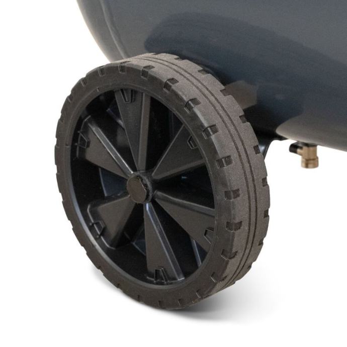 Radionički kompresor s remenskim pogonom i 2 cilindra, kapaciteta spremnika 100 litara. Maksimalni radni tlak je 10 bar, a protok zraka 335 l/min. Opremljen je regulatorom tlaka i dva manometra za preciznu kontrolu. Ima dva izlaza za zrak za istovremeni rad s više alata, sigurnosni ventil i ventil za ispuštanje kondenzata. Konstrukcija smanjuje vibracije, a kotači i ručka olakšavaju premještanje. Namijenjen je za radionice, servise i industrijska okruženja.