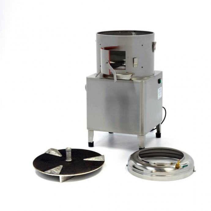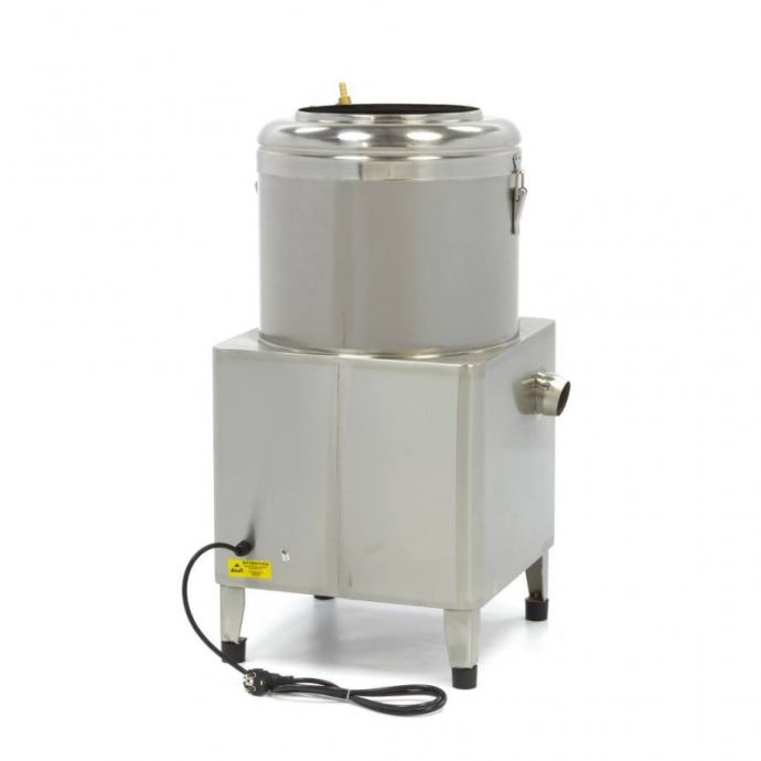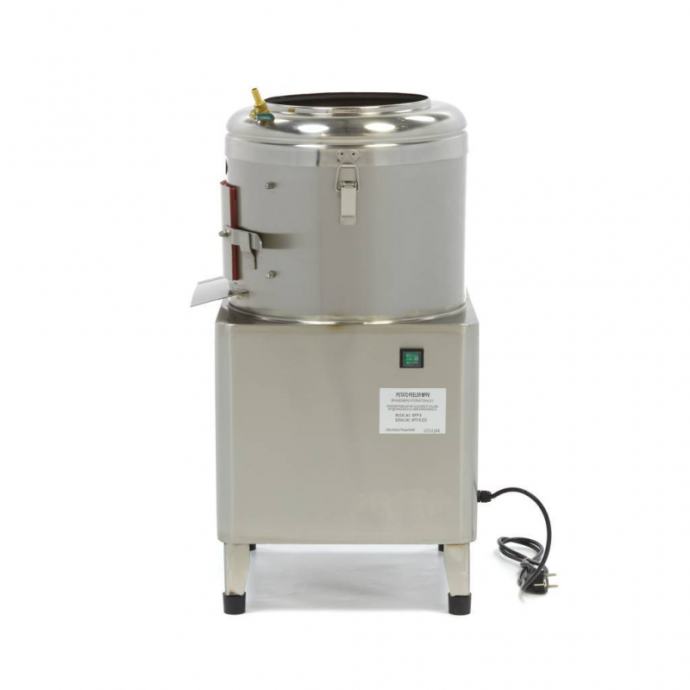 Profesionalni stroj za guljenje krumpira, mrkve i cikle s kapacitetom do 8 kg. Izrađen je od nehrđajućeg čelika s robusnom konstrukcijom i izdržljivom abrazivnom pločom koja se lako uklanja. Opremljen je priključkom za vodu i stoji na četiri gumene nožice koje osiguravaju stabilnost tijekom rada. Pogodan za brzo i učinkovito guljenje u kuhinji, kapaciteta do 160 kg na sat.